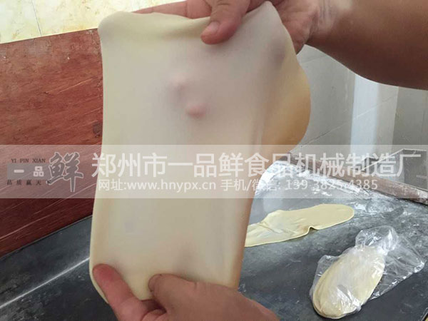 一品鮮燴面機(jī)生產(chǎn)出來的燴面坯,拉的薄的時(shí)候,就像紙一樣,能把面粉的面筋做出來。